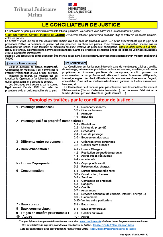 Planning des interventions du Point-Justice TJ de Melun 18 mars 2026